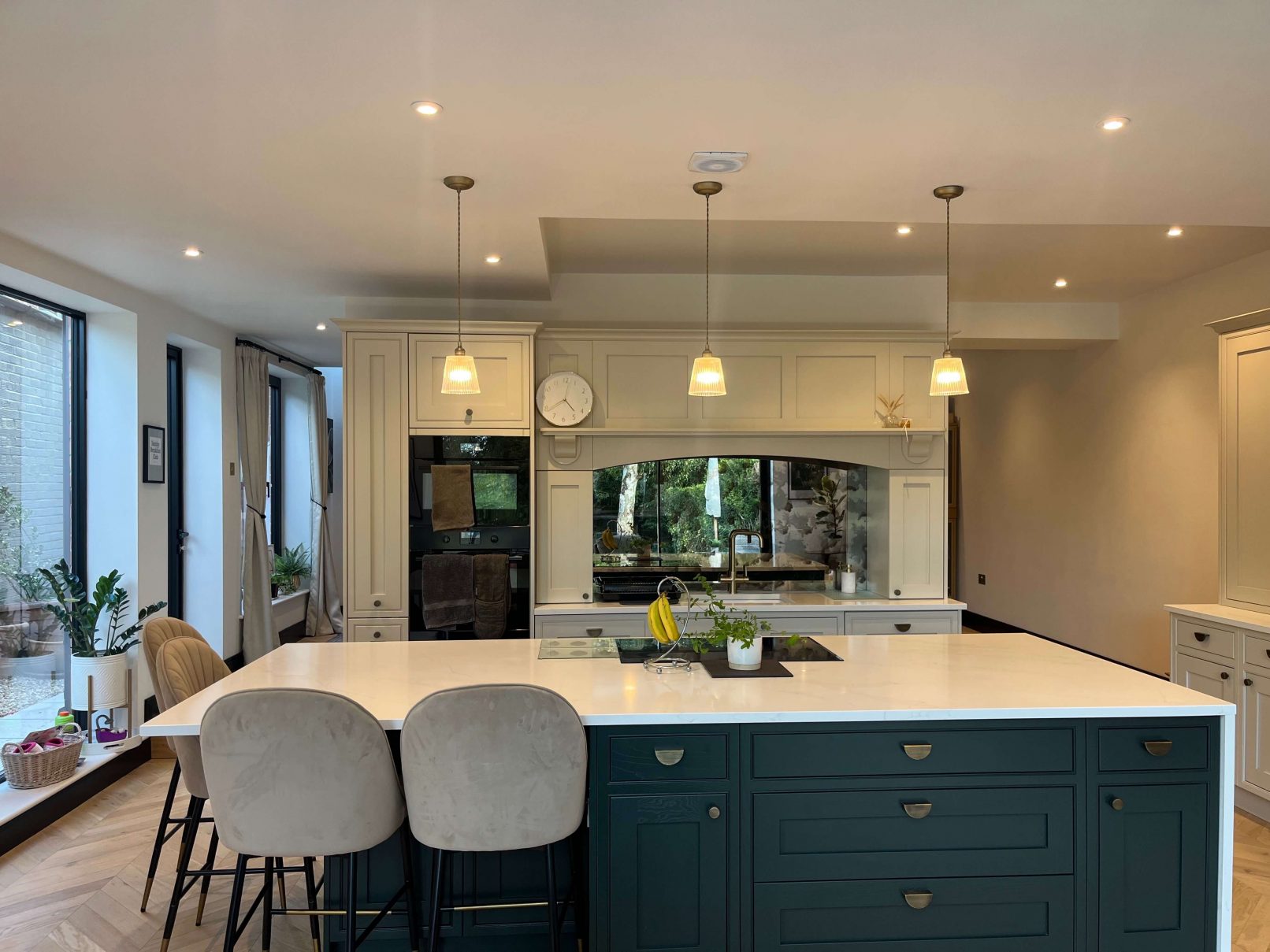 Our design solution involved relocating the utility room to the middle of the floor plan, freeing up space at the rear for a new open-plan kitchen and dining area. By doing so, we were able to enhance the flow of the home and improve the connection between the interior living spaces and the garden. Glazed sliding doors now provide direct access to the outdoor space, creating a smooth transition from inside to out.